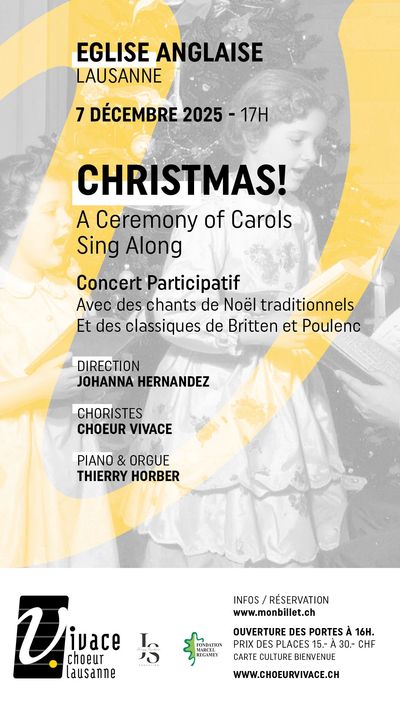 Le chœur Vivace se lance dans un nouveau projet, inspiré en particulier de la tradition sud et nord-américaine des chants de Noël et de la période festive de fin d’année. Il revisite le répertoire des Carols anglais ainsi que des chants de Noël américains et des classiques en français et italien, alternant styles anciens et jazz. Le chœur interprétera des chants profanes et religieux liés à cette période festive. Ils feront appel aux thèmes chers à cette période : paix, lumière, bienveillance.